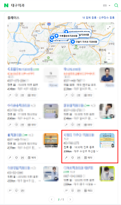 "대구 전역 기준 2페이지 노출"